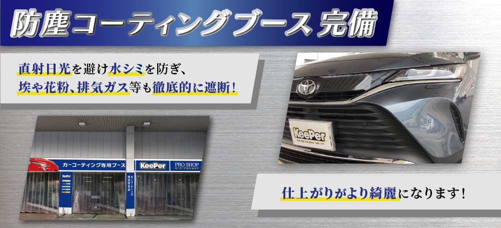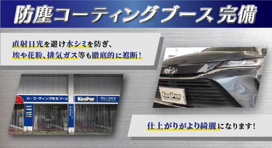 当店は専用のコーティングブースを完備しており、細かい埃や日光を遮断した環境下で作業を実施いたします!