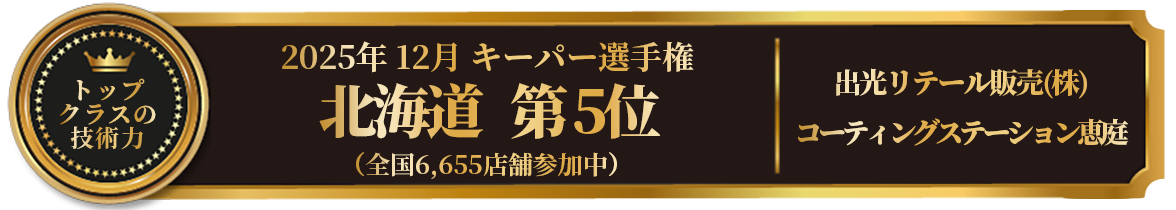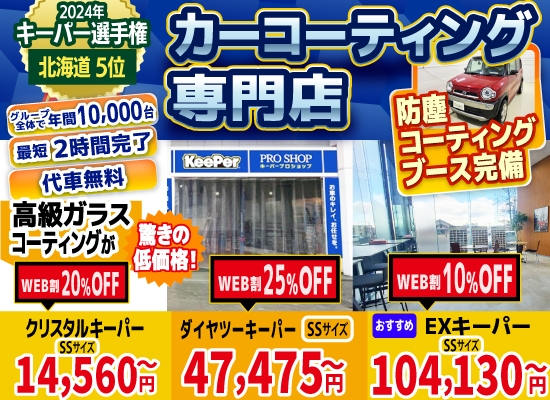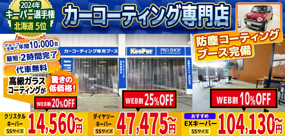 当店は、恵庭市、北広島市、千歳市、札幌市清田区エリアのカーコーティング専門店として、日本ダントツのカーコーティングブランド、キーパープロショップとして認定を受けております!