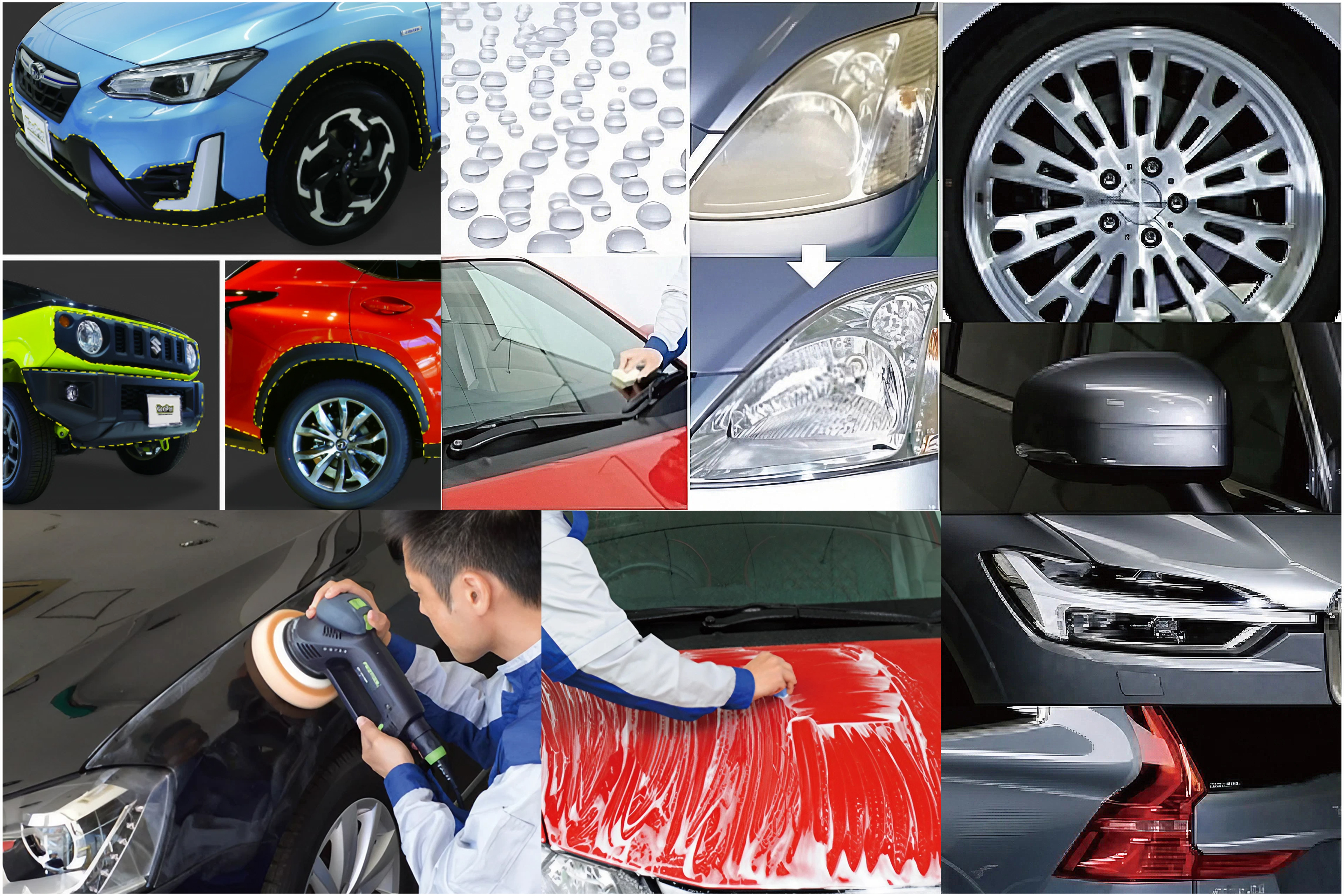| 工程 | 手洗い洗車+下地処理 (水あか落とし)+ガラスコーティング+レジン加工 |